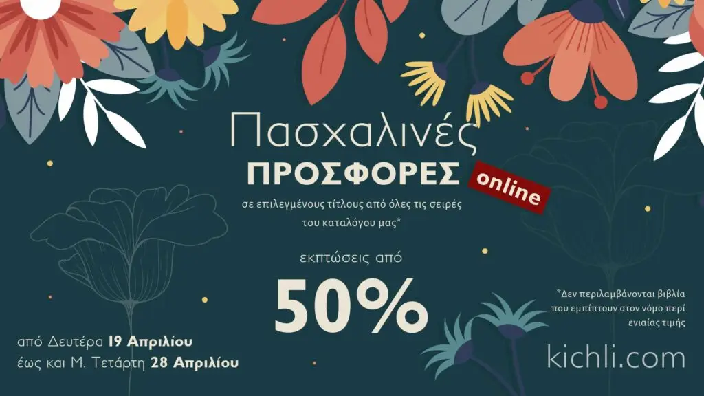 Αγαπητοί φίλοι, στην ιστοσελίδα μας kichli.com, για το διάστημα 19-28 Απριλίου θα βρείτε πολλές πασχαλινές προσφορές σε επιλεγμένους τίτλους από όλες τις σειρές του καταλόγου μας. Κάθε παραγγελία θα συνοδεύεται από πολλούς σελιδοδείκτες! Οι παραγγελίες σας μπορούν να πραγματοποιηθούν με τους τρόπους που περιγράφονται στις Αγορές και θα εκτελεστούν το συντομότερο δυνατό. Για τον Δήμο Αθηναίων υπάρχει δυνατότητα αποστολής […]