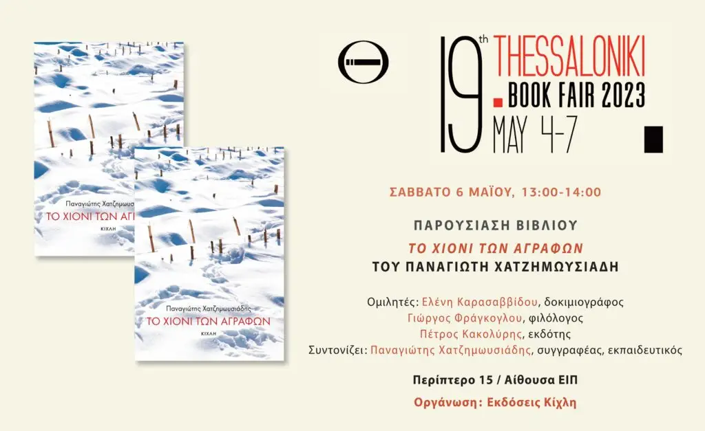 Παρουσίαση βιβλίου “Το χιόνι των Αγράφων” του Παναγιώτη Χατζημωυσιάδη, το Σάββατο 6 Μαΐου, 13:00-14:00, στο περίπτερο 15, αίθουσα ΕΙΠ.